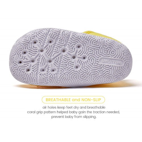 - Non-slip Soles: rubber soft spikes and sensory pods under outsoles prevent your child from slipping, help baby learn balance as their toes grip the ground