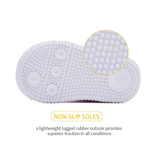 - Non-slip Soles: rubber soft spikes and sensory pods under outsoles prevent your child from slipping, help baby learn balance as their toes grip the ground