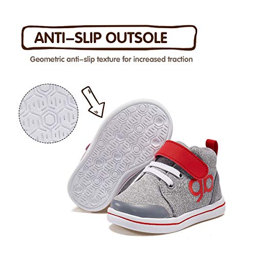 - Walking Free: Grooves cut into the sole let the foot flex naturally,and keep your baby safe from slipping. Roomy toe box help little ones learn balance as their toes grip the ground.