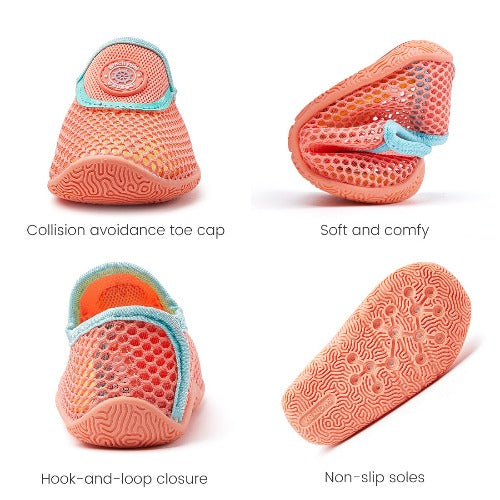 - Non-slip Soles: rubber soft spikes and sensory pods under outsoles prevent your child from slipping, help baby learn balance as their toes grip the ground